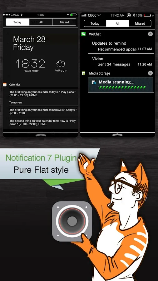 Overview: Espier Notifications 7 is an flat-style personalized status bar, notification page, and notification management plugin for Espier Launcher 7 (or Espier Launcher)